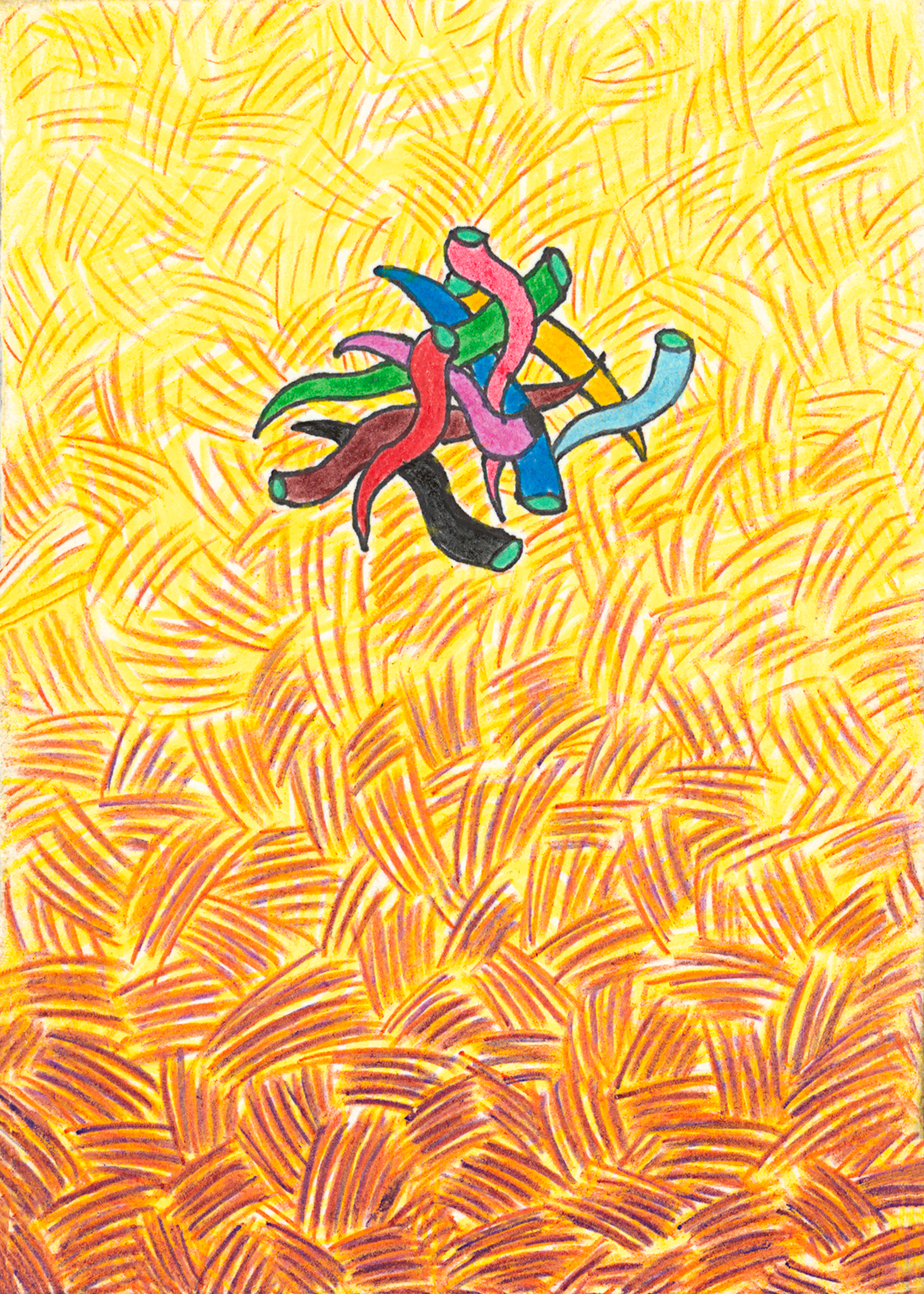 “These are the result of the energy I’m feeling from my current travels, and destinations, to the task of installing sculptures.”